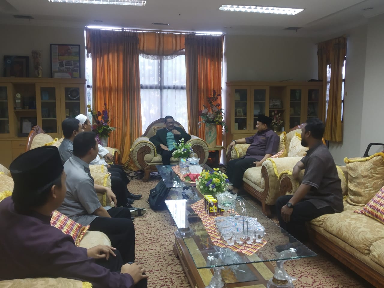 (STIBA.ac.id) Makassar – Ketua STIBA Makassar yang baru dilantik, Ustaz Ahmad Hanafi, Lc., M.A., Ph.D. memilih UIN Alauddin Makassar sebagai kunjungan silaturahmi pertamanya. Ustaz Ahmad yang didampingi para wakil ketua, kepala humas, kepala P3M, dan sekretaris senat diterima langsung oleh rektor UIN Alauddin, Prof. Dr. H. Musafir Pababbari, M.Si. di gedung rektorat, Kamis (11/07/2019).