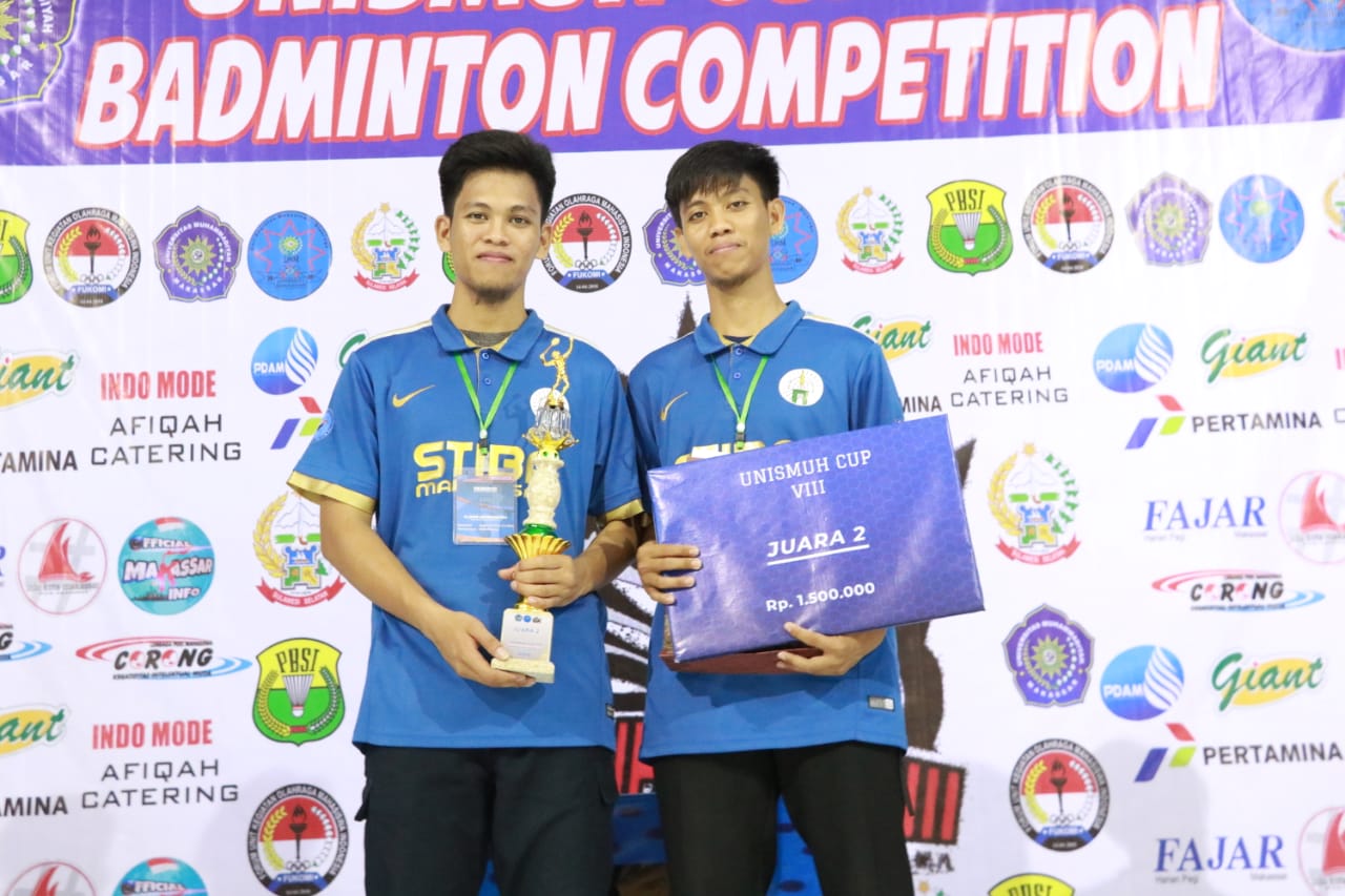 (STIBA.ac.id) Makassar – Persaingan pebulutangkis muda berjalan ketat di Unismuh Cup VIII Badminton Competition 2019. Dalam laga final yang berlangsung di Auditorium Unismuh, Sabtu (5/10/2019), tim STIBA Makassar yang terdiri dari kakak beradik Ilham dan Irfan harus mengakui keunggulan pemain tim UNM.