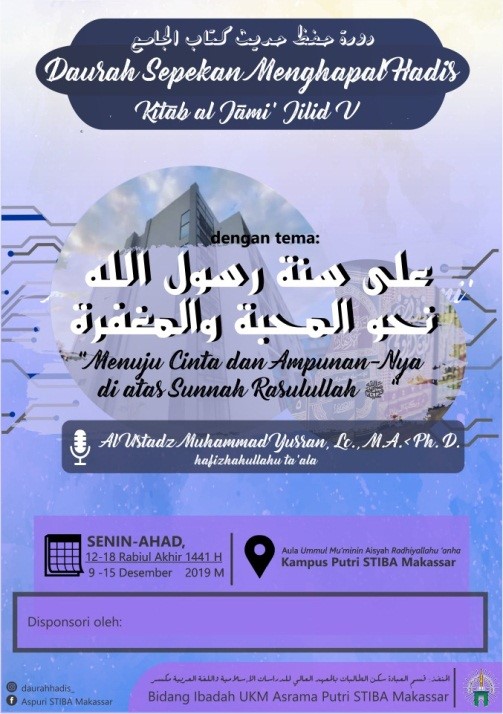 (STIBA.ac.id) Makassar –  Unit Kegiatan Mahasiswi Asrama Putri STIBA Makassar menyelenggarakan Daurah Sepekan Menghafal Hadis Kitab al Jami’ Jilid V. Kegiatan yang berlangsung selama sepekan ini menghadirkan Ustaz Muhammad Yusran Anshar, Lc., M.A., Ph.D. sebagai pensyarah tunggal.