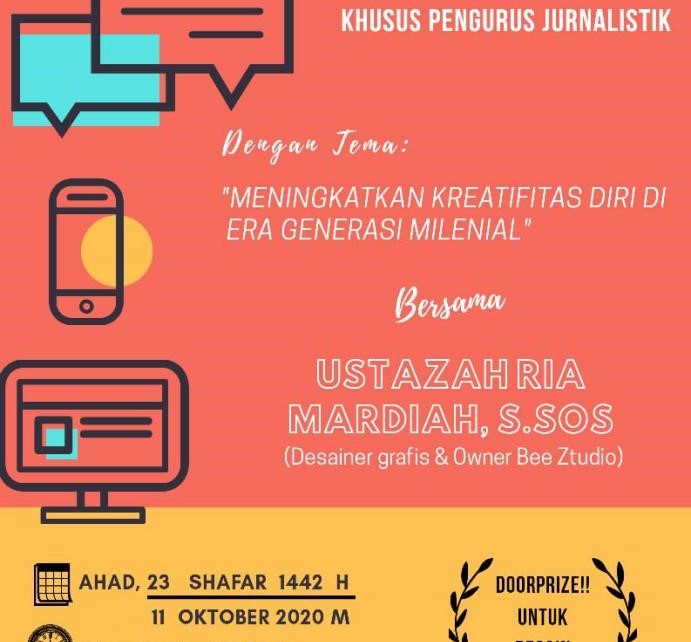 Ustazah Ria Mardiah, S.Sos. salah seorang desainer grafis menjadi narasumber acara yang mengusung tema “Meningkatkan Kreativitas Diri di Era Generasi Milenial” tersebut. Kegiatan ini diikuti oleh seluruh pengurus UKM Jurnalistik Putri STIBA Makassar. Diharapkan setelah mengikuti pelatihan ini, peserta memiliki wawasan dan pengetahuan dalam desain grafis.