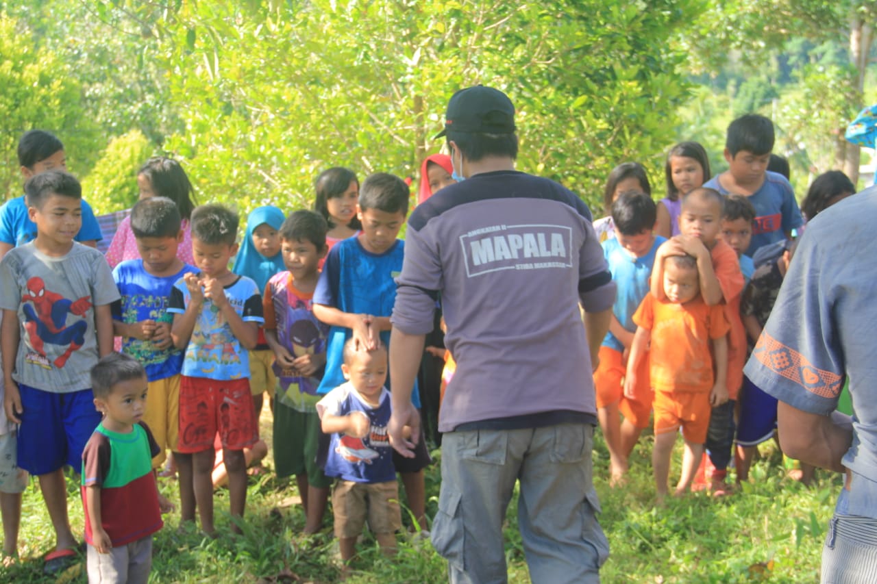 Hari pertama Tim Mapala STIBA Makassar melakukan kegiatan Trauma Healing kepada anak-anak penyintas yang sampai saat itu masih merasa takut bila tinggal di dalam rumah. Tim Mapala STIBA Makassar pun turut memberikan sejumlah games dan memberikan paket-paket hadiah kepada mereka.