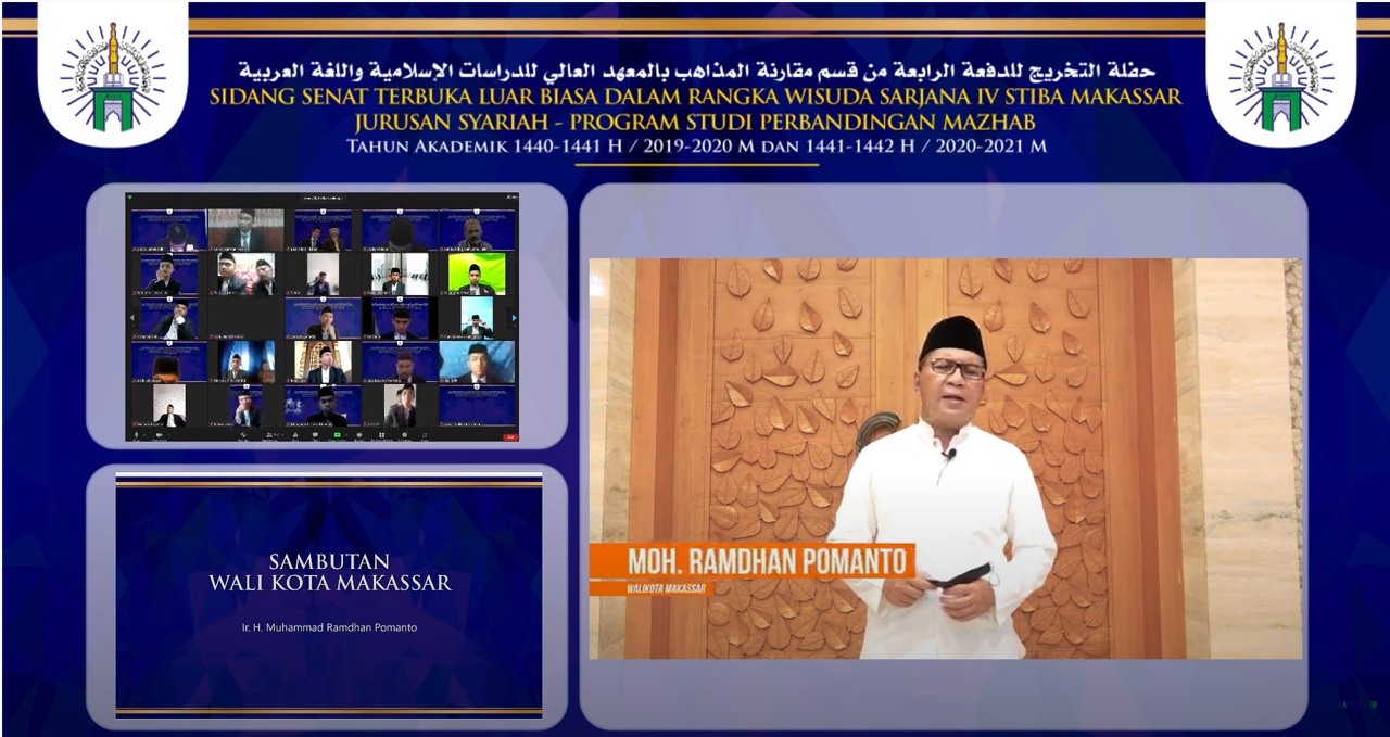 “Kepada civitas academica STIBA Makassar, selamat dan terima kasih telah melahirkan kader-kader terbaik, para ustaz muda kita, para ilmuwan muda yang menambah kualitas kota yang kita cintai ini, Kota Makassar,” ujar Walikota dalam video sambutannya yang ditonton seluruh peserta yang hadir di Gedung Aisyah maupun di ruang Zoom dan Kanal Youtube STIBA TV.