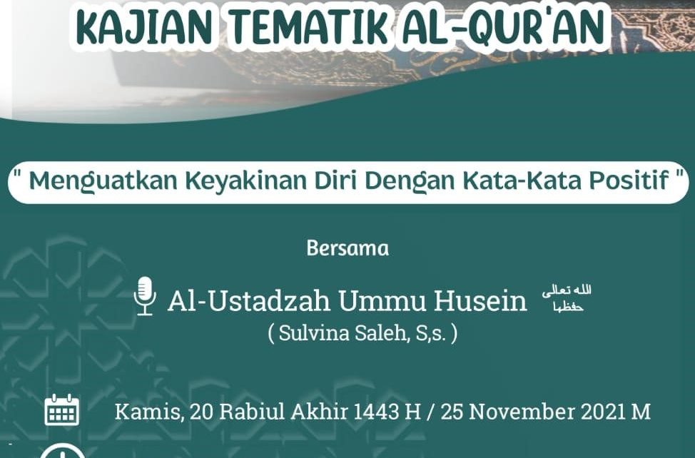 Dorongan tersebut bisa datang dari luar, seperti orang-orang terdekat. Namun, yang lebih utama datang dari dalam diri sendiri. Atas dasar ini, Bidang Hafalan UKM Raudhatul Huffaazh Putri STIBA Makassar mengadakan Kajian Tematik yang bertema “Menguatkan Keyakinan Diri dengan Kata-Kata Positif” pada Kamis (25/11/2021).