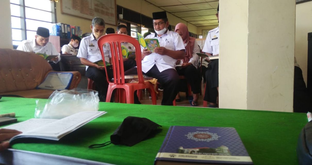 Semangat belajar ditunjukkan para pimpinan dan staf di kecamatan tersebut saat proses belajar mengajar Al-Qur’an dimulai.