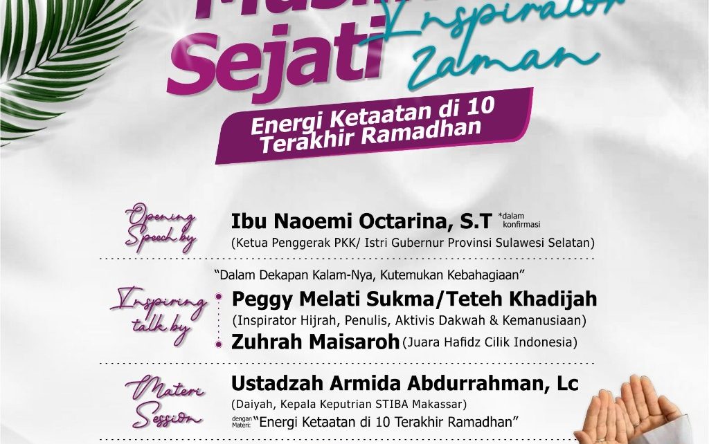 Acara yang akan berlangsung Jumat pagi (22/04/2022) ini akan dibuka oleh Ibu Naeomi Octarina, S.T. selaku Ketua Penggerak PKK (istri gubernur Sulawesi Selatan).