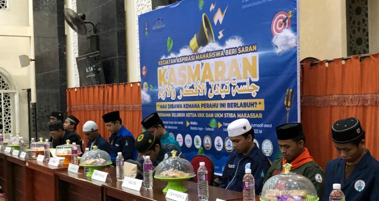 (STIBA.ac.id) Makassar – Dewan Eksekutif Mahasiswa (DEMA) STIBA Makassar periode 1445-1446 H/2023-2024 M untuk pertama kali menggelar forum serap aspirasi mahasiswa. Bertempat di Masjid Anas bin Malik STIBA Makassar, forum ini mengangkat tema menarik, yaitu “Mau Dibawa ke Mana Perahu Ini Berlabuh?”