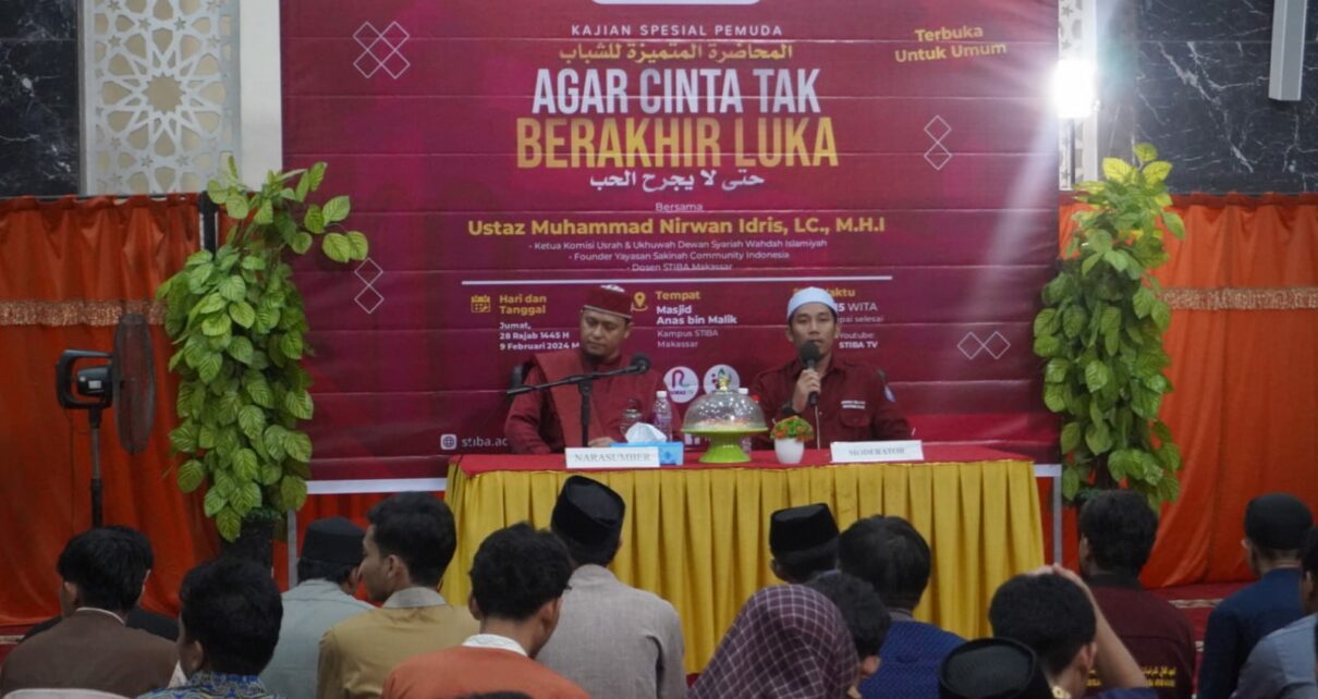 (STIBA.ac.id) Makassar – BRTM Anas bin Malik Sekolah Tinggi Ilmu Bahasa Arab (STIBA) Makassar mengadakan kajian spesial dengan tema “Agar Cinta Tak Berakhir Luka” pada Jumat (09/02/2024). Kajian Spesial Pemuda UKK BRTM Anas bin Malik STIBA Makassar tahun 2024 merupakan salah satu kajian yang membahas isu-isu yang kerap muncul di kalangan pemuda, seperti peringatan “Valentine’s Day.” Acara ini dihadiri oleh seluruh mahasiswa STIBA Makassar dan terbuka untuk masyarakat umum, dengan mengundang perwakilan dari beberapa Sekolah Menengah Atas (SMA) di sekitar STIBA Makassar.