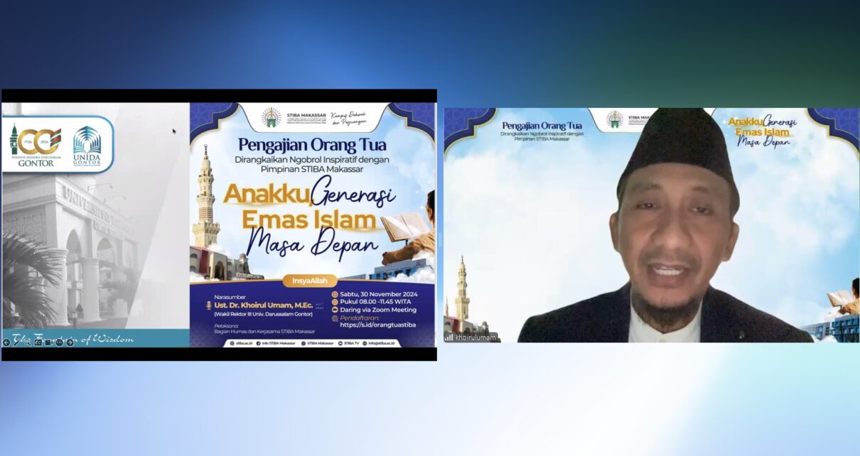 (STIBA.ac.id) Makassar – Bagian Humas dan Kerja Sama STIBA Makassar menyelenggarakan acara Pengajian Orang Tua Mahasiswa dengan tema “Anakku Generasi Emas Islam Masa Depan”. Kegiatan ini dilaksanakan secara daring melalui Zoom Meeting pada Sabtu, 30 November 2024, mulai pukul 08.00 Wita.