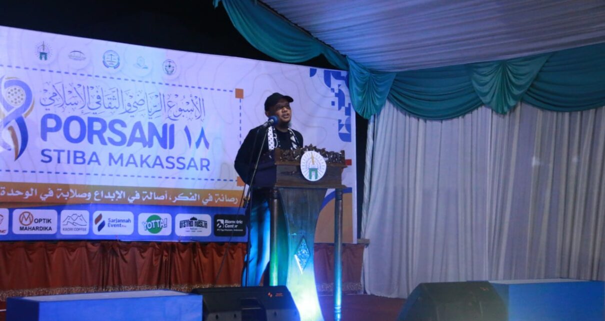 (STIBA.ac.id) Makassar — Suasana Porsani XVIII makin seru. Tapi ada satu momen yang membuat adem: sambutan dari Ketua STIBA Makassar, Ustaz Dr. Ahmad Hanafi, Lc., M.A. Beliau hadir dengan gaya khasnya yang tenang tapi mengena audiens.