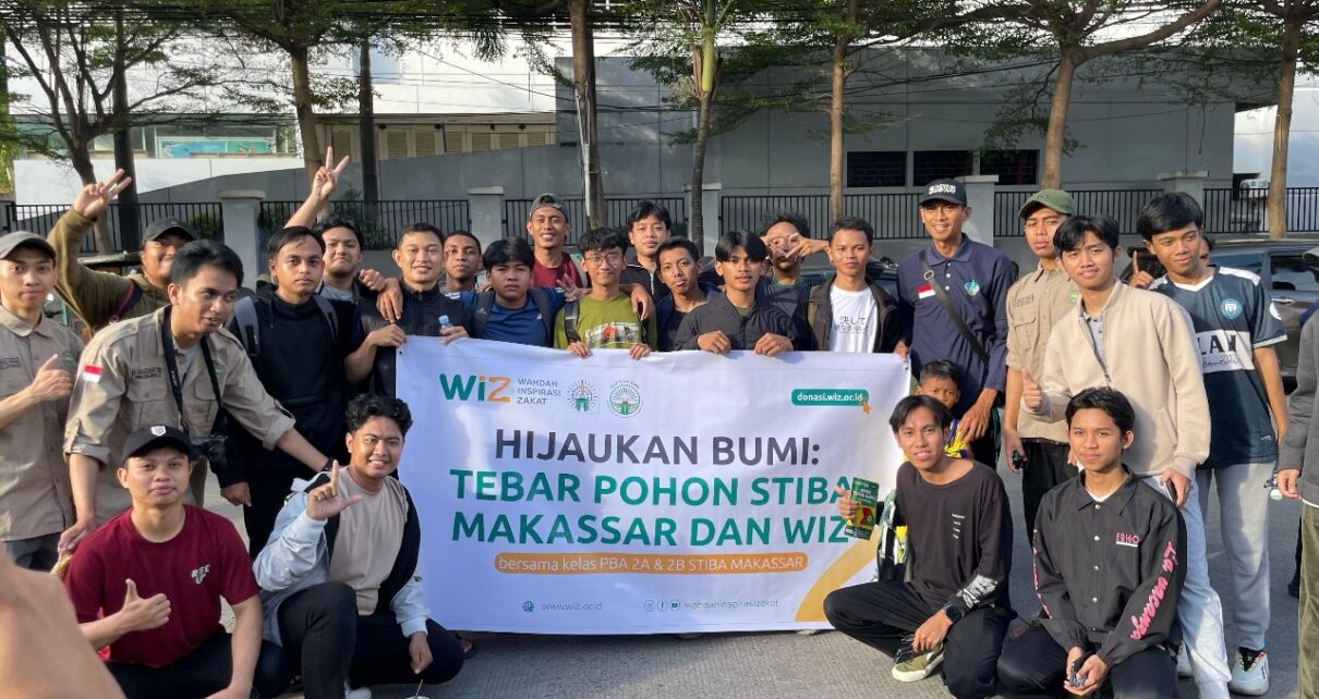 (STIBA.ac.id) Makassar A- CFD Boulevard Makassar pagi itu, Ahad (25/5/2025) ramai dengan aksi seru. Mahasiswa STIBA Makassar dari kelas PBA 2A dan 2B turun ke jalan bukan buat nongkrong, tapi buat bagi-bagi bibit pohon gratis dalam kegiatan “Hijaukan Bumi: Tebar Pohon STIBA Makassar dan WIZ”.