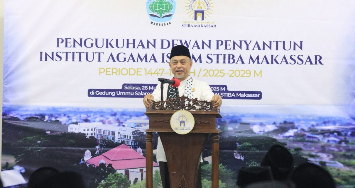 (STIBA.ac.id) Makassar — Ketua Dewan Penyantun STIBA Makassar, Drs. Tamsil Linrung, menyampaikan sambutan dalam acara Pengukuhan Dewan Penyantun STIBA Makassar pada Selasa, 22 Juli 2025.