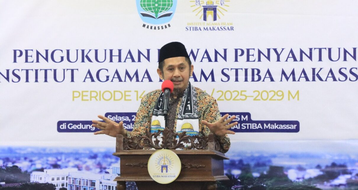 (STIBA.ac.id) Makassar – Ketua Dewan Pembina Yayasan Pesantren Wahdah Islamiyah (YPWI), Dr. K.H. Muhammad Zaitun Rasmin, Lc., M.A., menyampaikan sambutan dalam acara Pengukuhan Dewan Penyantun Institut Agama Islam (IAI) STIBA Makassar. Dalam pidatonya, beliau mengapresiasi peran para tokoh pendukung sekaligus memaparkan visi besar pengembangan kampus dan program Gerakan Sejuta Dai.