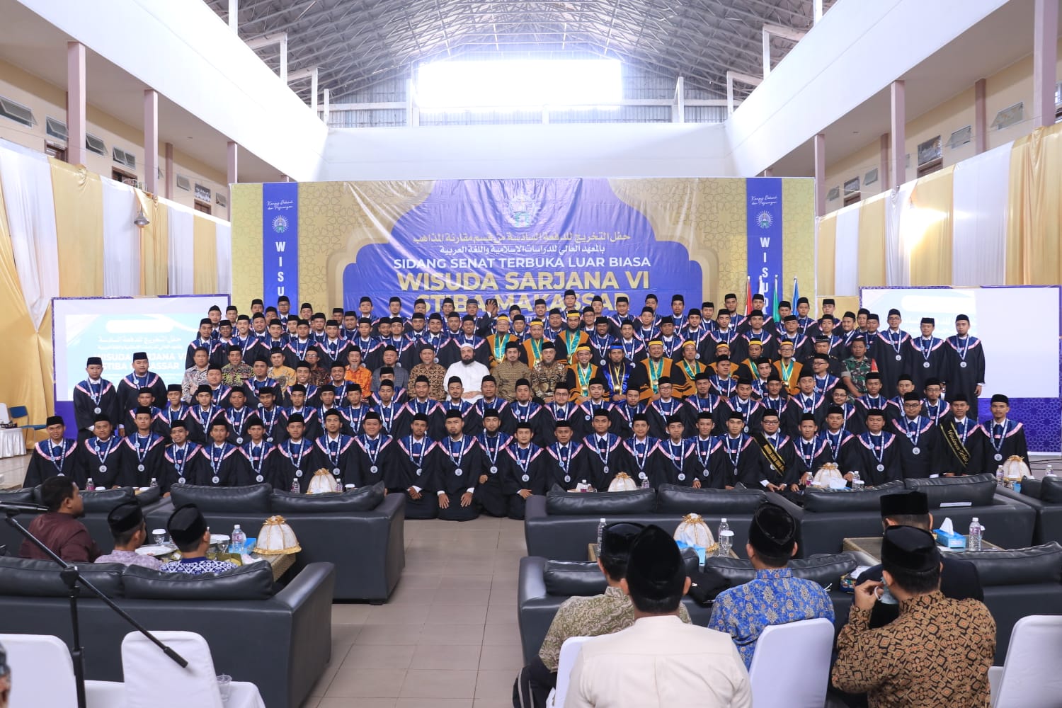 This significant moment was not only attended by the STIBA Makassar academic community but was also enlivened by honored guests, including Vice Chairman of the Indonesian House of Representatives (DPR RI), Drs. H. Tamsil Linrung, Secretary Coordinator of Kopertais Region VIII, Dr. K.H. Nur Taufiq Sanusi Baco, M.Ag., General Leader of DPP Wahdah Islamiyah, Dr. K.H. Muhammad Zaitun Rasmin, Lc., M.A., and other distinguished guests.